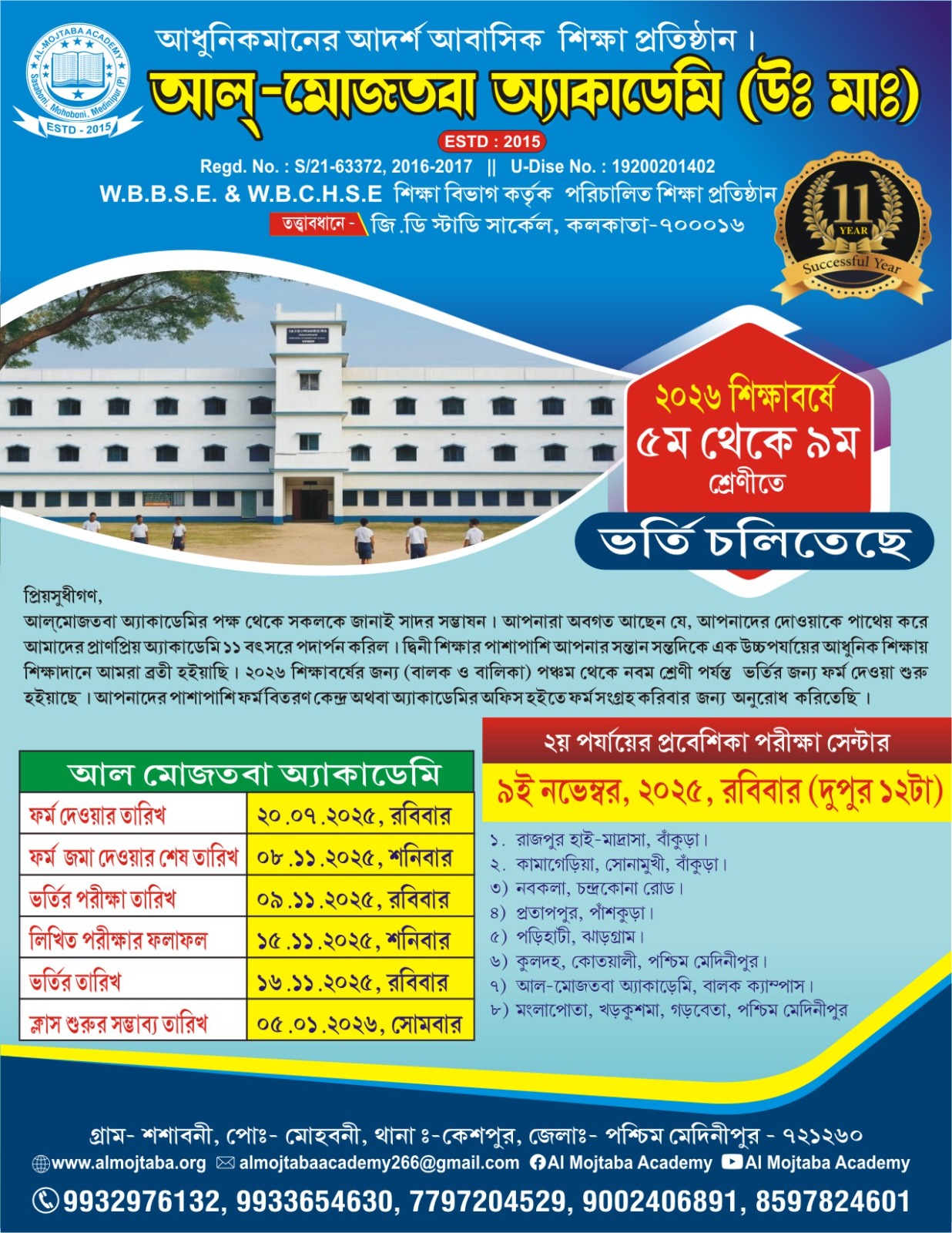 Established in 2015, Al Mojtaba Academy is a premier educational institution recognized by the West Bengal Board of Secondary Education and West Bengal Council of Higher Secondary Education.